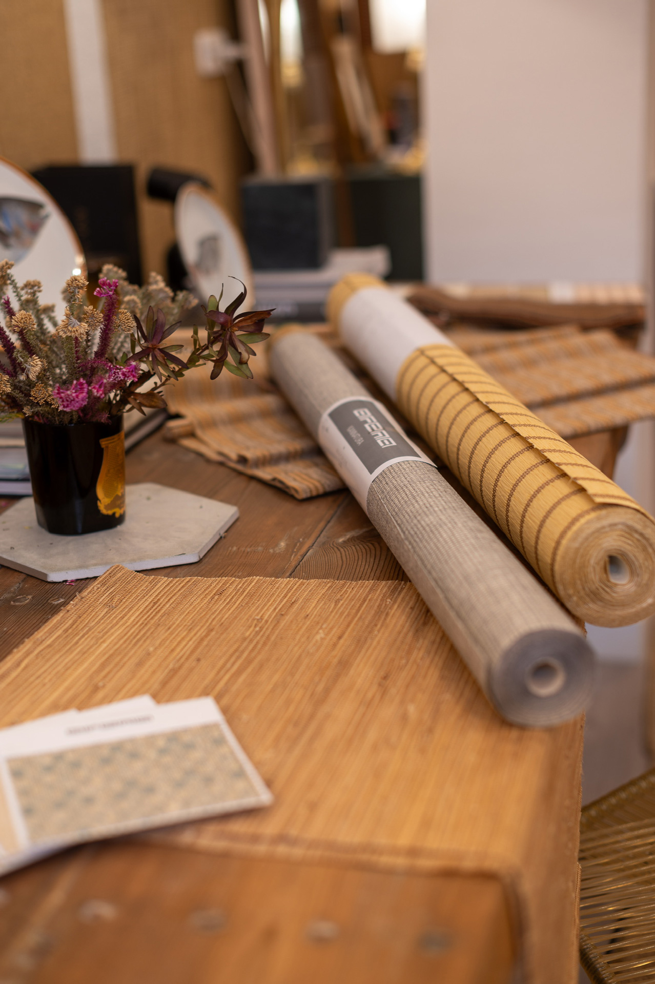 Nuestra marca como editores textiles nace directamente de nuestros proyectos de interiorismo y de una profunda pasión por los revestimientos de pared en fibras naturales.